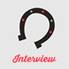 Description: Gray icon with a horseshoe open side facing down with pink text underneath that says Interview